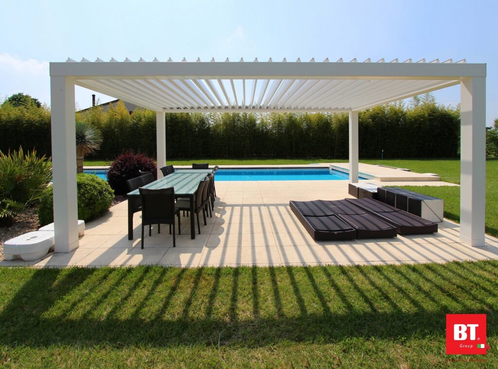 Una pergola bioclimatica è una soluzione tecnologicamente più avanzata. Questo tipo di pergola è progettata per adattarsi alle condizioni ambientali, consentendo un controllo ottimale della temperatura, della luce solare e della ventilazione. Le pergole bioclimatiche sono dotate di lamelle orientabili che possono essere regolate tramite un sistema automatizzato. Queste lamelle permettono di regolare la quantità di luce solare e calore che entra nell’area coperta, consentendo una migliore gestione del clima e dell’ambiente.