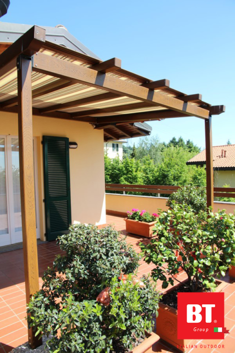 Le nostre pergole solarium sono strutture che richiamano l’estetica e i materiali delle pergole classiche. Sono perfette per trasformare giardini, terrazzi, balconi, cortili ed attici in oasi ombreggiate di comfort e riservatezza. I solarium nascono senza copertura tuttavia, è possibile aggiungere innovativa copertura in policarbonato alveolare, per avere un riparo ottimale dalla pioggia, e ulteriore tenda da sole (oppure solo tenda da sole). La qualità dei nostri prodotti è garantita da una progettazione attenta e una realizzazione armoniosa. La pergola solarium si integrerà perfettamente con gli spazi circostanti, aggiungendo un tocco di stile alle vostre abitazioni.